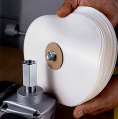 The Scotch-Brite™ Large Area Stripe Removal Disc is a strong PVC foam disc that effectively removes unwanted adhesives and stripes. This disc applies pressure so you don't have to do any hand-scraping, and it may be used with a variety of tools, including die grinders or cordless drills.