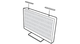 Les bras de suspension s’enclenchent sur les Filtres de confidentialité avec cadre 3M(MC) et reposent ensuite sur le haut du moniteur, ce qui permet de les retirer, de les nettoyer et de les remettre en place facilement.