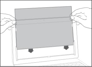 Les languettes pour fixation par glissement se fixent sur les bords du cadre de l’écran de votre appareil et restent en place, ce qui vous permet de faire glisser le filtre sur et hors de l’écran selon vos besoins.