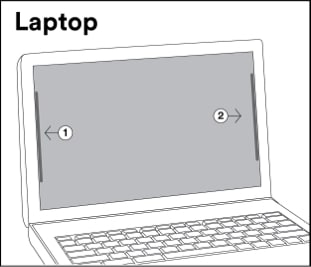 Remarque: Votre système de fixation COMPLY est fourni avec deux charnières. Chaque charnière comporte une extrémité adhésive transparente et une extrémité adhésive noire. Vous fixerez l’extrémité transparente à votre filtre de confidentialité et l’extrémité noire à au cadre de votre ordinateur portatif.