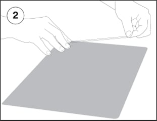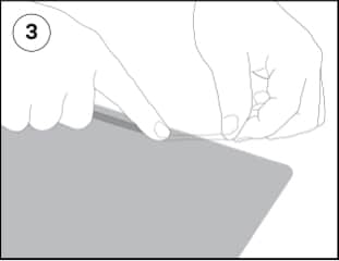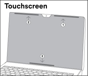 Remarque: Votre système de fixation COMPLY est fourni avec deux charnières. Chaque charnière comporte une extrémité adhésive transparente et une extrémité adhésive imprimée. Vous fixerez l’extrémité transparente à votre filtre de confidentialité et l’extrémité imprimée au couvercle de votre ordinateur portatif.
